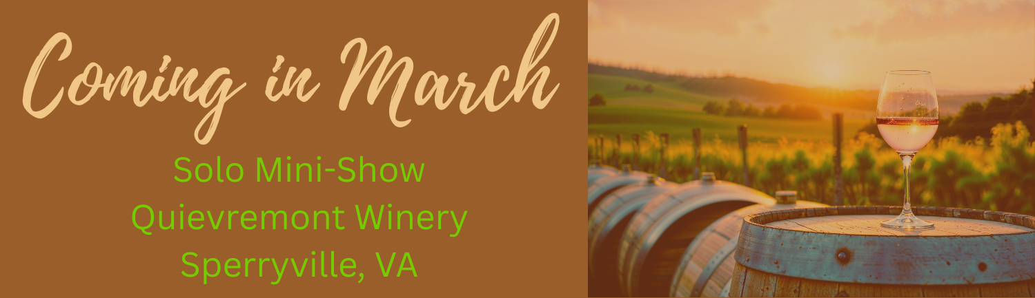 This March, I will be holding a solo mini-show at Quievremont Winery just outside of Sperryville, VA in Rappahannock County. To learn more about "The Q" visit https://www.quievremont.com/. MOREDETAILS TO COME!!
